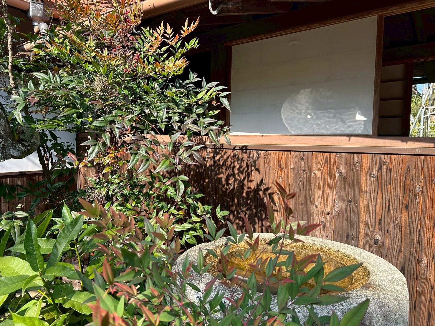 歪みガラス越しに眺める木々の緑や、代々の庭師が手を入れてきた松や梅、柘榴の木々が、静かに流れる時間と、深い安らぎを感じさせてくれます。