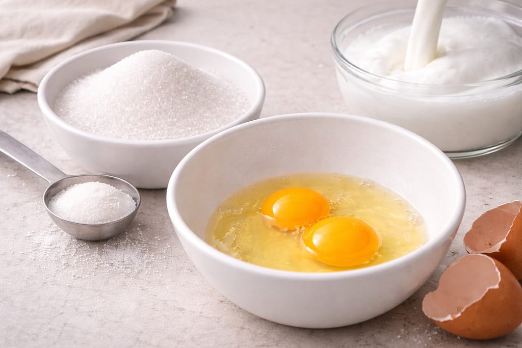 卵、牛乳、砂糖。